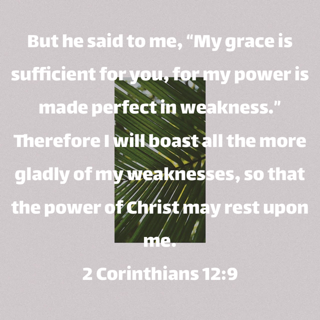 During my life thus far, I have experienced varies situations in which I had no ability to make certain things happen. I have been wronged. I have been placed in situations where the expression “between a rock and a hard place” would rightfully be said. I have also been the cause for issues to come into my life due to my ignorance. In everyone of these occasions I would finally have to hang my head and hands low and with a sad heart I would bring these issues to God. And like Psalm 34:4, I have received deliverance from my fears. During these hard times and in the mist of trials I have had people tell me “you’re not trying hard enough” or “you are just to comfortable” or “we are unable to help you”. But the truth was, that even though I was giving all my efforts to grab hold of my desire for change there were always walls that I just could not break down no matter how great my efforts were. In those hard moments I realized that I am indeed very weak and need help. And yes, God was the help that I needed. Now after years of facing different trails that I was to weak to overcome, which these trails would then led me to seek God’s help for another victory, I started to recognize a trend. Thus I realized that God’s strength comes in times of my weakness.