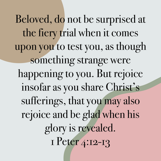 Also in the book of 1 Peter 4:12-19, it tells us as well to not count our trials as something strange but instead see yourself as someone who is privilege to suffer for the sake of your faith in Jesus Christ. This is why it is important to read your bible daily because it will help you understand that the way to Christ is not always an easy one. As a matter of fact it is indeed a death walk. As we chose Christ daily we are denying our self (flesh) daily. Maybe you may be struggling with impurity, idolatry, or anger. Whatever it is you are now called to resist those temptations by submitting to what God would have you do.