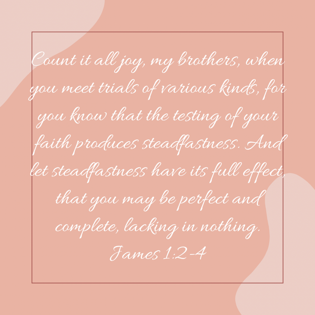 My sister or brother in Christ Jesus if you are facing some type of difficulty then allow me to first inform you that God maybe using that situation to mature you. In the book of James 1:2-4, it tells us that we should be joyful during times of suffering because those trials are what God allows into our lives in order give us a steadfastness or firmness in our faith.